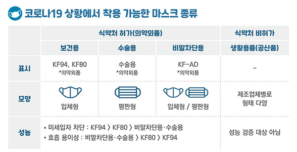 식품의약품안전처는 “비말차단용 마스크(KF-AD) 신설 등 마스크 선택의 폭이 넓어지고, 코로나19의 확산으로 생활 방역의 중요성이 강조됨에 따라 올바른 마스크 사용법 등을 소개하게 되었다”고 밝혔다.