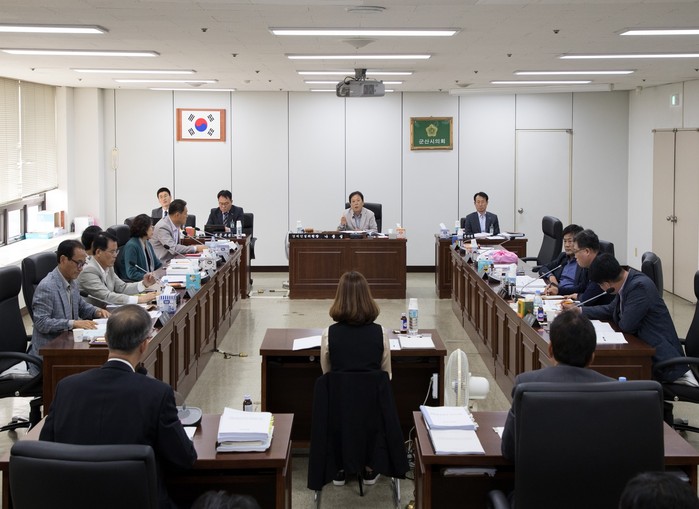 ▲군산시의회 나종성 경제건설위원회 위원장이 회의을 주재하고 있다.(군산시의회 제공) |