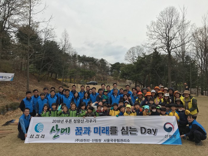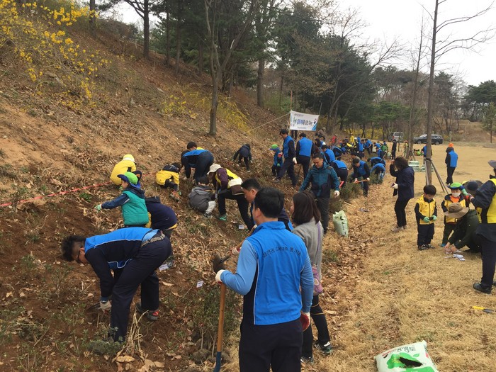 ▲지난 10일 제73회 식목일을 기념해 서울 북부지방산림청 서울국유림관리소가 ‘국민의 숲’ 협약 단체인 (주)삼천리와 인천 청학동에 위치한 청량산 일대에서 나무심기 체험 행사를 가졌다.(서울국유림관리소 제공) |