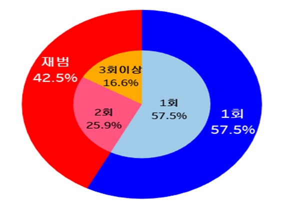 그러나 우리 사회 전반적으로 음주운전에 대한 관대한 인식과 문화가 자리 잡고 있어 최근 5년 간 전체 음주운전 사고 중 재범자 사고가 43%를 차지하는 등 재범률이 매우 높다.