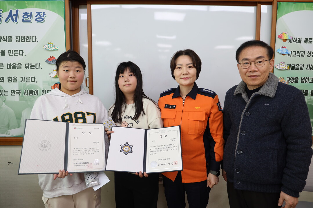 이번 공모전에서 안덕초등학교 6학년 정서윤 학생이 최우수상, 5학년 조유정 학생이 장려상을 각각 수상했다. 최우수상으로 선정된 정서윤 학생은 경상북도소방본부 우수상을 수상했다.