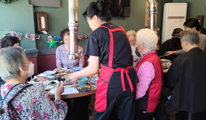 [로컬세계 부산=기우치 기자]부산광역시 수영구 광안3동 행정복지센터는 어버이날을 앞둔 지난 4일 관내 ‘문삼이 돼지갈비’에서 저소득 취약계층 홀로어르신들에게 무료 점심식사를 지원했다고 6일 밝혔다.