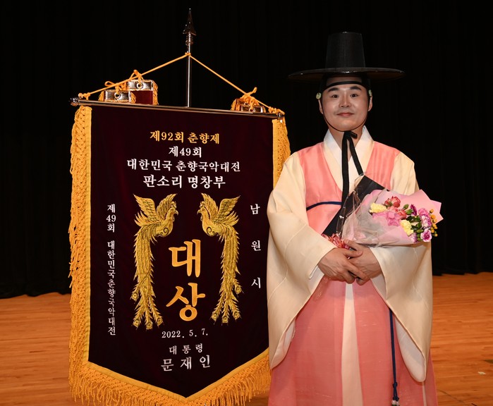▲'제49회 대한민국 춘향국악대전' 판소리 명창부에서 대상(대통령상)을 받은 허정승 씨. 남원시 제공 |