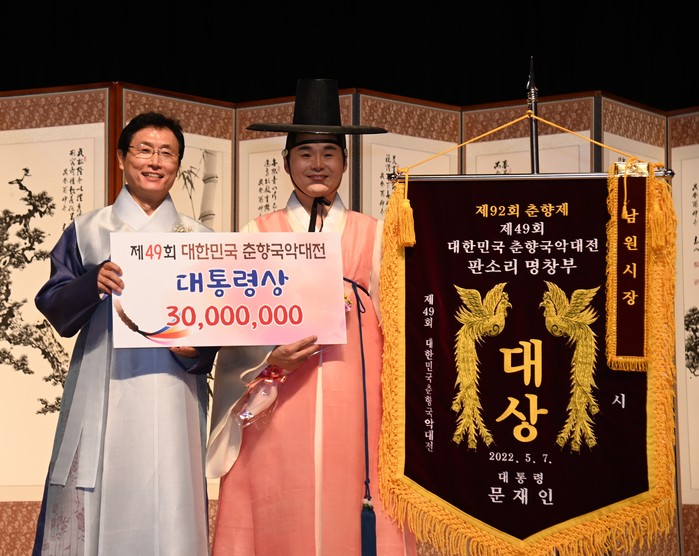 [로컬세계 이태술 기자]제49회 대한민국 춘향국악대전에서 허정승(42,전남 목포)씨가 명창부 대통령상을 수상해 판소리 명창의 반열에 올랐다.