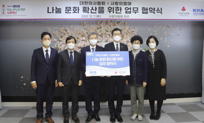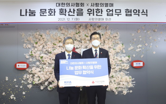 사랑의열매 사회복지공동모금회(회장 조흥식)가 대한의사협회(회장 이필수)와 7일 나눔문화 활성화를 위한 업무협약식을 체결했다고 밝혔다.