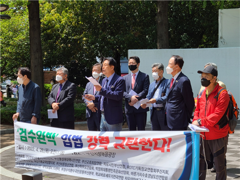 이날 집회는 나라사랑부·울·경기독교총연합회, 부산학부모연합회 등 총 22개 단체가 공동 주최하고, 민경욱 전 국회의원, 한병철 변호사 등이 연설자로 나서 검수완박 개정안의 문제점과 부당함을 호소했다.