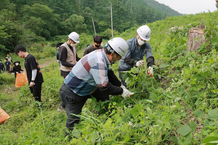 이와 관련, 24일 전국한우협회 김삼주 회장, 김상록 홍천군지부장은 남태헌 산림청 차장과 최수천 북부지방산림청장 등 산림청과 함께 강원도 홍천군 매화산경영모델숲에서 직접 덩굴제거 및 칡줄기 수거작업을 벌였다.