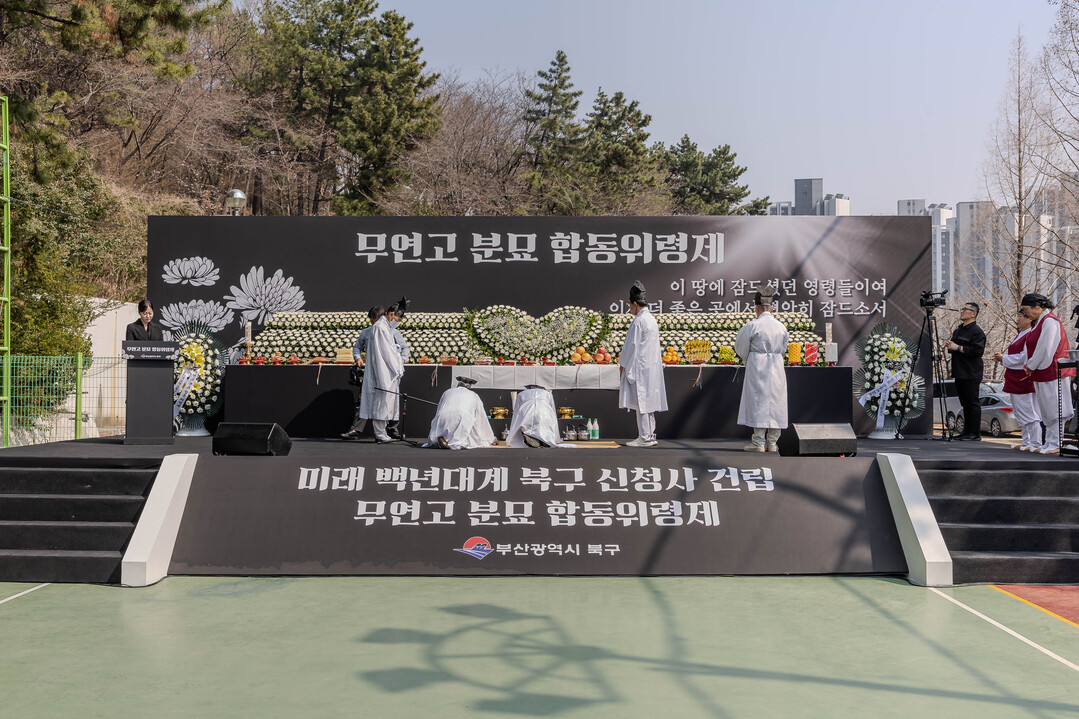 [로컬세계 = 김의준 기자] 부산 북구는 26일 오후 2시, 신청사 건립 부지인 덕천생활체육공원 일원에서 신청사 건립공사 착공에 앞서 ‘무연고 분묘 합동위령제’를 거행했다고 밝혔다.