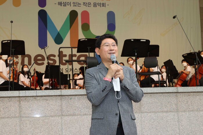 [로컬세계=김병민 기자] 이상일 용인시장은 취임 첫 주말을 맞은 지난 2일 수지구 죽전야외음악당에서 열린 (재)용인문화재단이 운영하는 꿈의 오케스트라 ‘용인’의 해설이 있는 작은 음악회 ‘오 마이 오케스트라’를 관람했다.