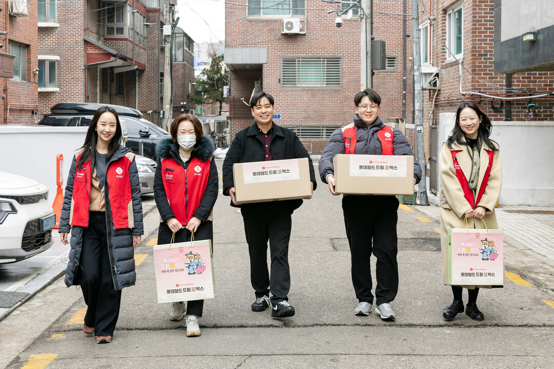 정성껏 마련한 ‘드림溫(온)박스’를 전달하러 방문하는 롯데월드 샤롯데 봉사단