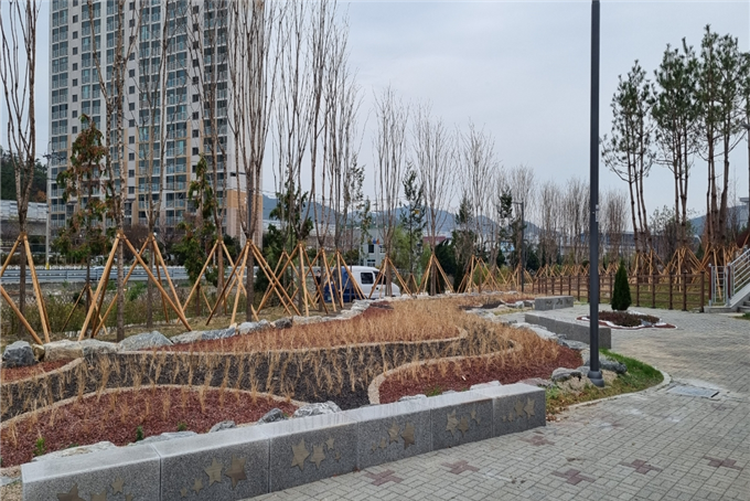 ▲부산 기장군 내 오시리아관광단지 미세먼지차단숲. 부산시 제공 |