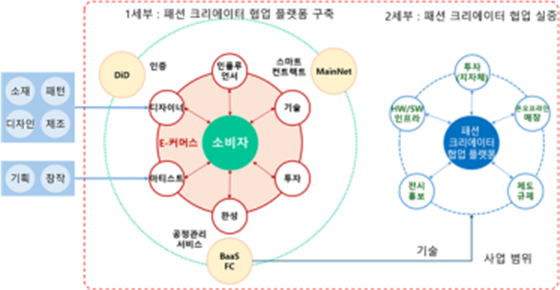 ▲ 블록체인 기반 패션 크리에이터 협업 플랫폼 사업 구조도. 부산시 제공 |