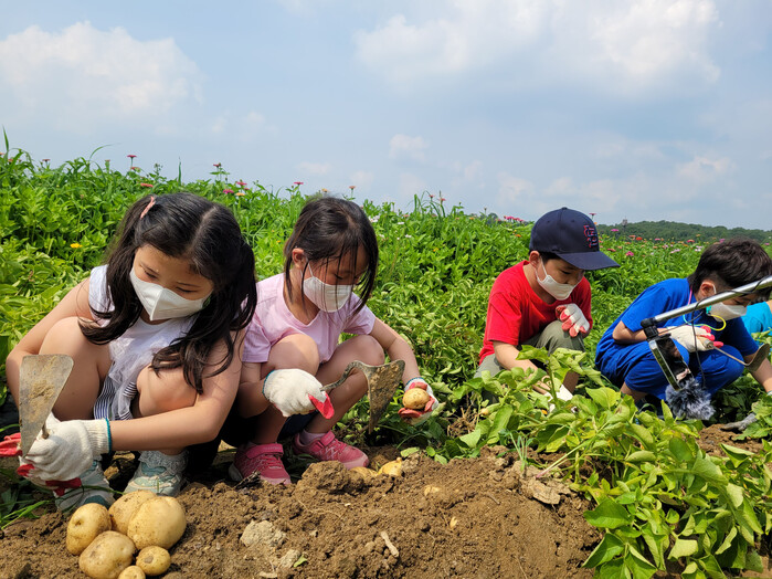 유치원생, 초·중·고교생이 하루에 250~300명씩 이곳을 찾아와 흙 속에 알알이 영근 감자를 캐 보는 체험을 한다.