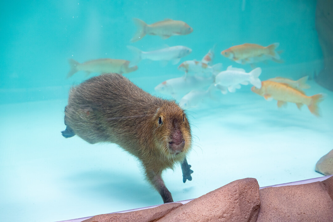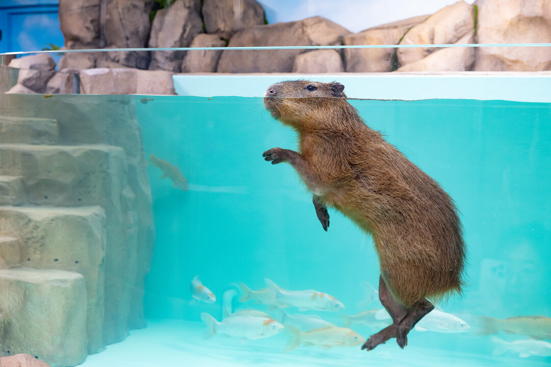 새롭게 조성된 수조에서 자유롭게 수영 즐기는 카피바라.