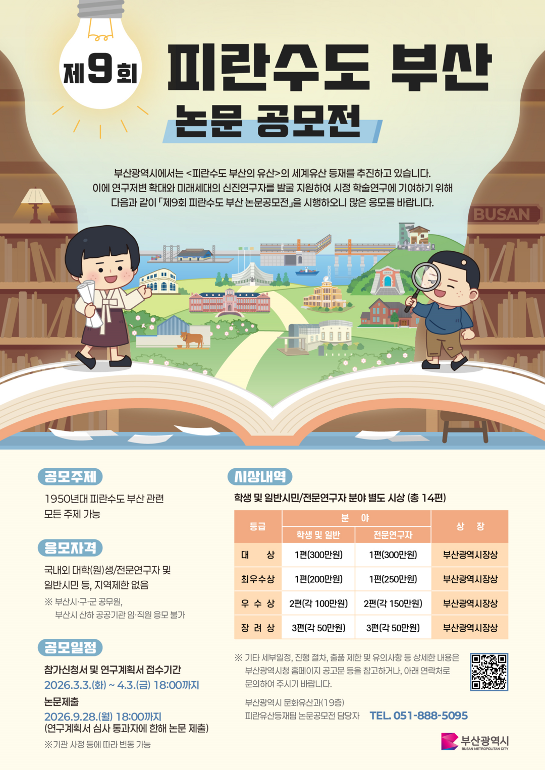 공모 주제는 1950년대 피란수도 부산과 관련된 모든 분야로, 관심 있는 누구나 참여할 수 있다. 다만 심사의 형평성과 연구 전문성, 공모 취지를 고려해 학생·일반시민 분야와 전문 연구자 분야로 나눠 진행한다.