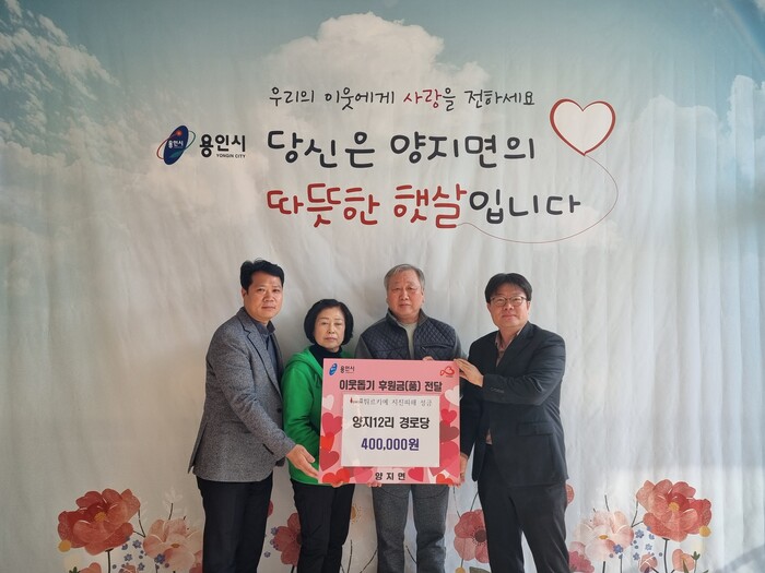 [로컬세계=김병민 기자]경기 용인시 처인구 양지면은 양지12리 경로당이 지진피해를 입은 튀르키예에 보낼 성금 40만원을 기탁했다고 24일 밝혔다.