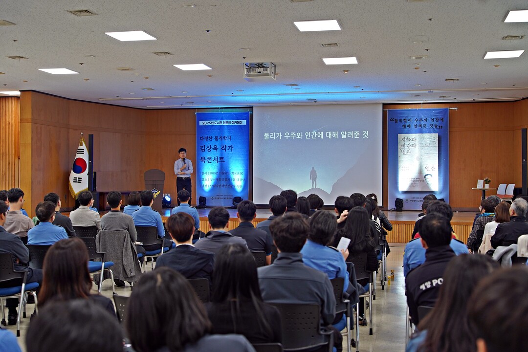 이번 콘서트는 부산시립중앙도서관과의 업무협약 일환으로, 남해해경청과 부산해경서 직원들이 참석한 가운데 진행됐다. 김상욱 작가는 ‘물리학이 우주와 인간에게 알려주는 것들’을 주제로 강연을 펼쳤다.