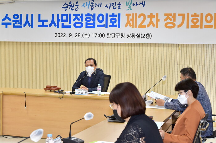 ▲ 수원시 노사민정협의회가 제2차 정기회의를 하고 있다. |
