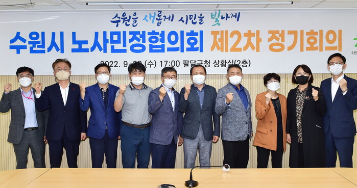 ▲ 수원시 노사민정협의회 위원들이 함께하고 있다. 수원시 제공 |