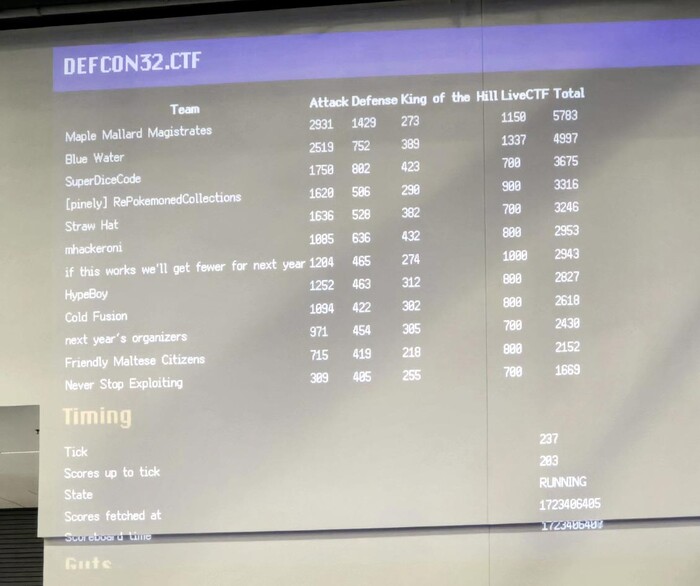 DEFCON 32 CTF 본선에 진출한 12개팀 중 BoB 멘토와 수료생이 포함된 팀은 MMM, SuperDiceCode, HypeBoy, Cold Fusion, Friendly Maltese Citizens 등 5팀이다.