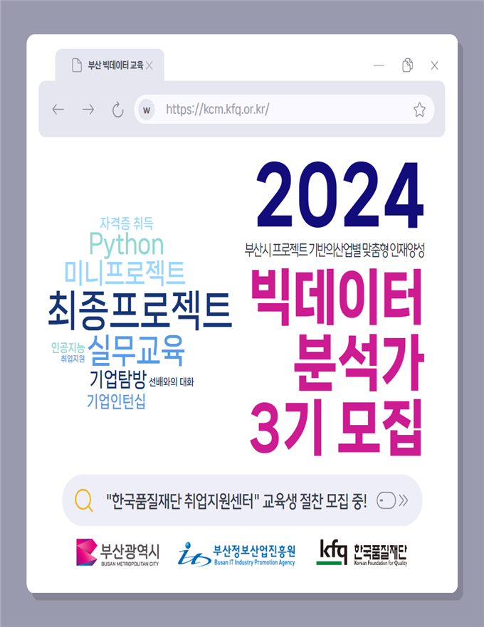 전공 유무와 상관없이 부산지역 빅데이터 분야 취업을 희망하는 청년이라면 누구나 참여 가능… 5.7까지 케이에프피(kfp) 취업지원센터 누리집을 통해 신청하면 돼