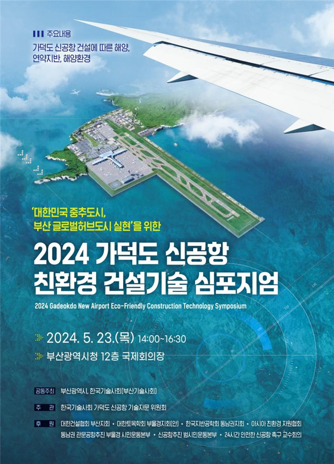 [로컬세계 부산=맹화찬 기자]부산시는 23일 오후 2시 시청 국제회의장에서 '대한민국 중추도시, 글로벌 허브도시 부산 실현'이라는 주제로 '가덕도신공항 친환경 건설기술 심포지엄'을 개최한다고 밝혔다.
