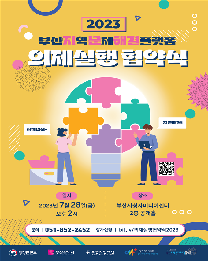 [로컬세계 부산=맹화찬 기자]부산시는 28일 오후 2시 부산시청자미디어센터 2층 공개홀에서 ‘2023년 부산지역문제해결플랫폼 의제실행 협약식’을 개최하고 올해 사업을 본격적으로 추진한다고 밝혔다.