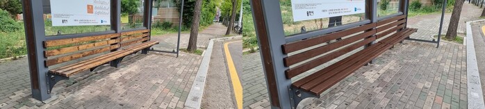 ▲ 수지구가 낡고 색 바랜 버스승강장 의자를 도색했다 (전·후 모습)/ 용인시 제공 |