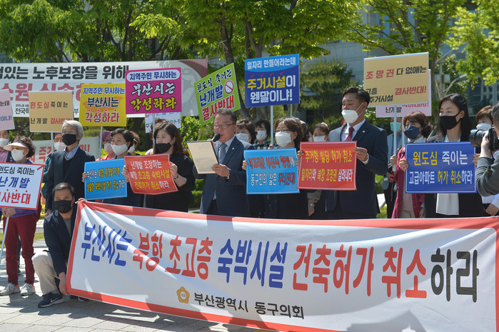 [로컬세계 맹화찬 기자]부산 동구의회(의장 배인한)는 지난 13일 제286회 정례회 제1차 본회의에서 '북항재개발지역 내 생활형 숙박시설 건축허가 반대 결의안'을 만장일치로 가결하고 같은 날 부산시청을 항의 방문했다.