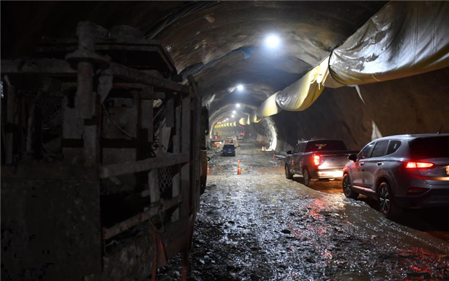 ▲지난달 25일 발생한 부산 '만덕~센텀 대심도 도시고속화도로' 지하 건설현장 내 토사유출 현장 전경. 부산시 제공 |