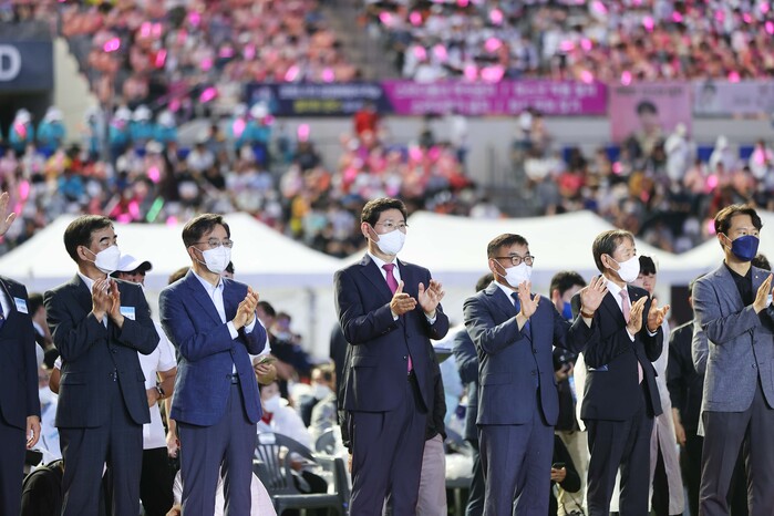 또 “대한민국 반도체 산업의 출발지인 용인은 놀라운 미래를 추구하는 도시라고 할 수 있다. 세계적 첨단기업을 품으며 글로벌 반도체 중심도시로 성장해나가고 있다”고 강조하며 “대한민국 성장 동력의 핵심도시, 글로벌 도시 용인에서 경기도민과 선수단이 아름답고 뜨거운 화합의 장을 만들어 달라”고 당부했다.