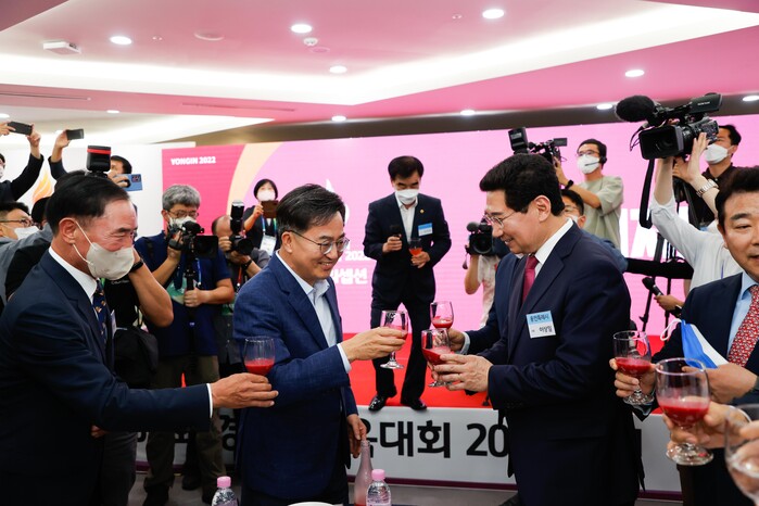 이상일 용인특례시장은 환영사에서 “경기도체육대회는 ‘놀라운 미래’(대회 개회식의 주제)를 향한 화합의 축포이다. 대회의 성공 개최를 위해 많은 성원을 해주신 시·군 체육 관계자들과 시민 여러분께 감사드린다. 출전한 모든 선수들이 갈고닦은 기량을 한껏 발휘해 좋은 성적을 거두기 바란다”며 “최상의 경기를 펼칠 수 있도록 용인특례시는 폐막일까지 최선을 다하겠다”고 말했다.