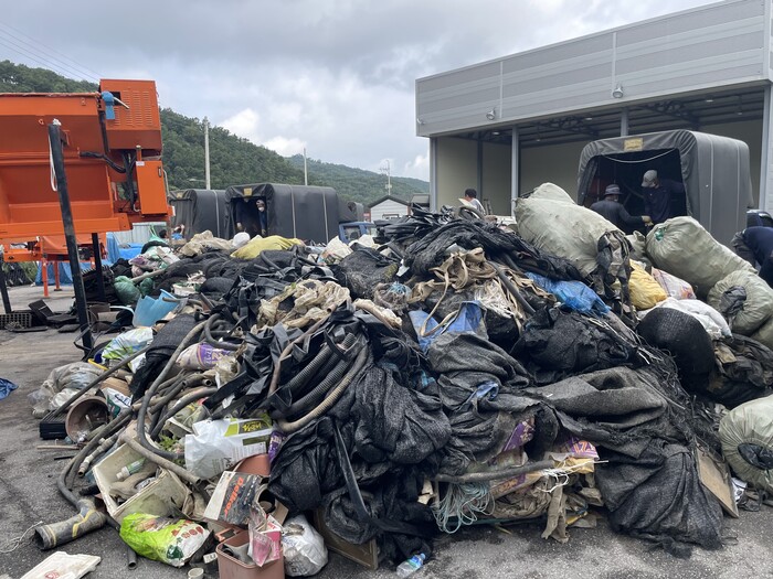 이에 읍은 환경미화원, 인근 농가 등과 함께 영농폐기물을 수거했으며, 수거된 영농폐기물은 쓰레기 적환장에서 분리 작업 후 폐기 처리할 예정이다.