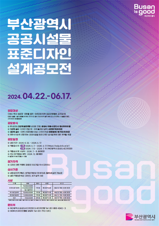 이번 공모전은 글로벌 허브도시로 도약할 부산의 매력을 담은 표준형 디자인을 공공시설물에 도입해 조화롭고 아름다운 도시이미지를 조성하고자 올해 처음 시행된다.