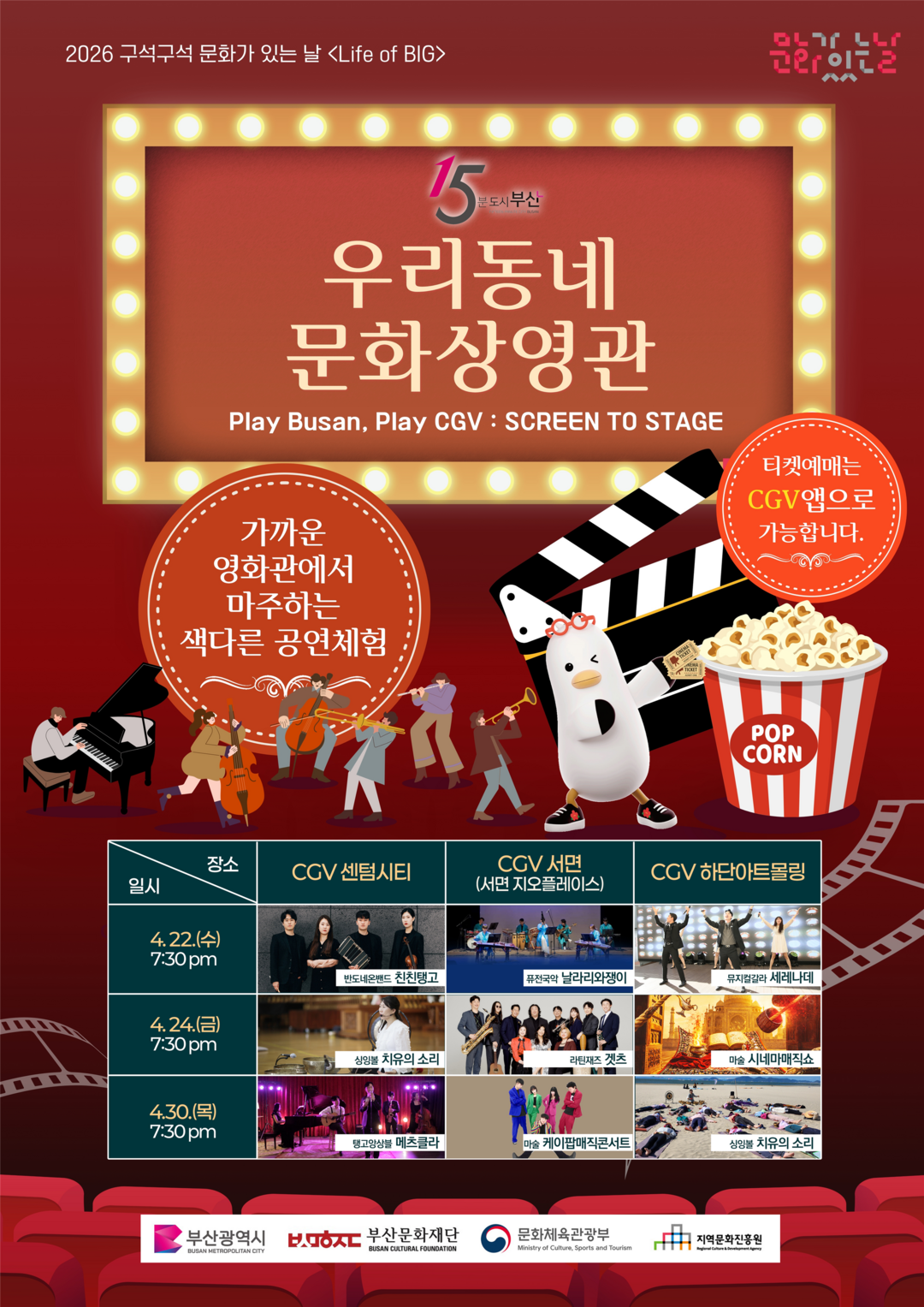 공연은 CGV 센텀시티, CGV 서면, CGV 하단아트몰링 등 부산 주요 거점 영화관 3곳에서 열린다.