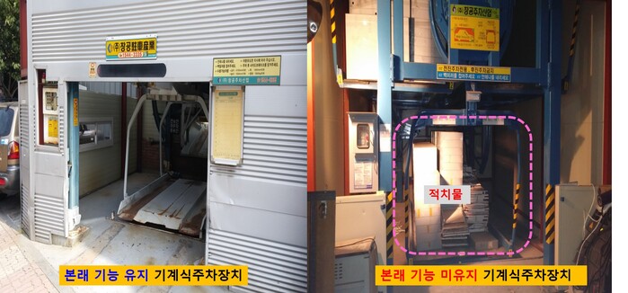 | ▲ 기계식주차장에 차가 아닌 다른 물건이 적치돼 있는 경우. 용인시 제공 |