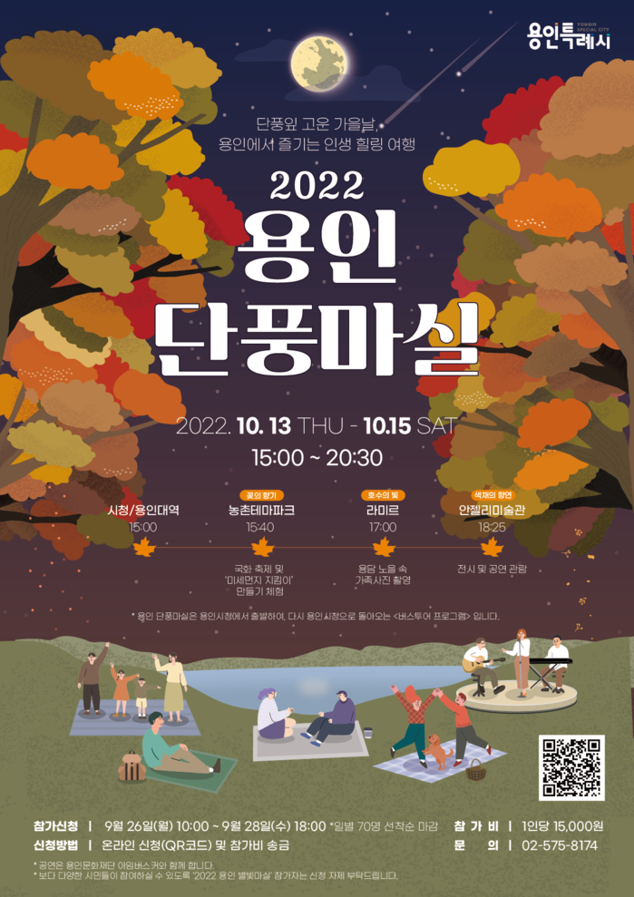 용인특례시는 ‘용인에서 즐기는 인생 힐링 여행’을 테마로 ‘용인 단풍마실’을 준비했다. 앞서 지난 1~3일 큰 호응을 얻었던 ‘용인 별빛마실’의 또 다른 버전이다.