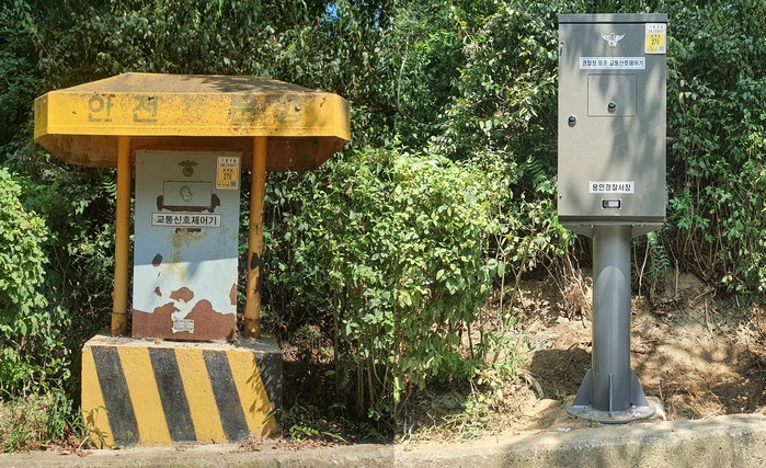 ▲수지구가 노후 교통신호제어기 교체공사를 추진한다. 사진은 교체 전과 후 모습. 용인시 제공 |
