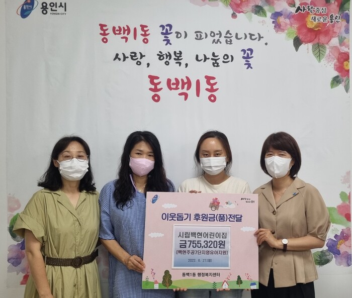[로컬세계=김병민 기자]경기 용인시 기흥구 동백1동은 백현마을주공7단지아파트 내 시립백현어린이집(원장 고진숙)이 어려운 이웃을 위해 75만5000원을 기탁했다고 28일 밝혔다.