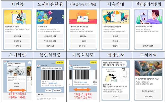 이 서비스는 지역 내 15곳 모든 공공도서관에 적용돼 모바일 회원증(가족 포함) 검색, 도서 검색·예약·반납연장, 열람실 잔여 좌석 검색, 독서 프로그램 수강 신청 등을 할 수 있다.