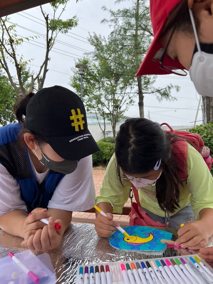 아이들은 방수가 가능한 워터브러쉬로 나뭇잎, 단청, 물고기, 해, 달, 산, 곰모양 그림이 그려진 부채에 형형색색의 옷을 입혔다. 지나가는 주민들도 부채 만들기에 손을 보탰다.