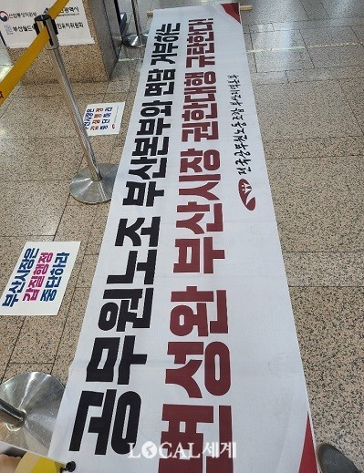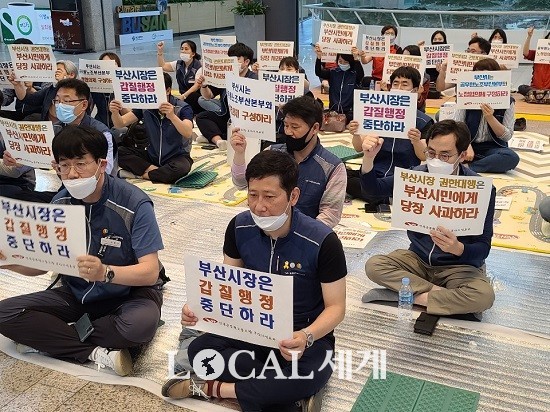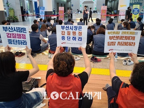 민노총‧전공노 부산본부는 지난달 27일부터 29일까지 △재난지원금 선불카드 지급중단사태와 관련, 부산시와 전공노 부산본부 간의 노정협의체 구성 △변성완 부산시장 권한대행의 사과 △부산시의 16개 구‧군 공무원에 대한 갑질행정 중단 △부산시장 권한대행과의 면담 요청 등의 요구조건을 내걸고 시위를 계속했다.