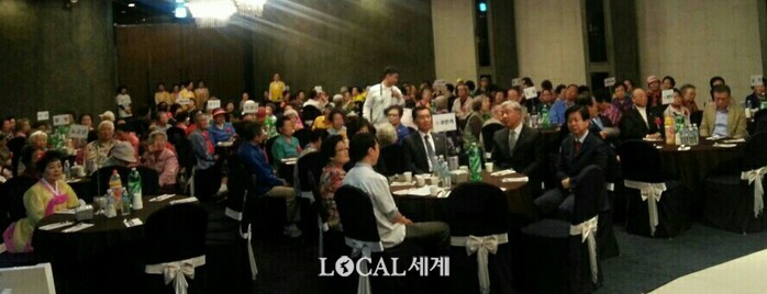 ▲11일 이룸 웨딩홀에서 대한적십자사봉사회 마포구지구협의회 주관 어르신 행복나눔잔치가 열리고 있다. 김장수 기자. |