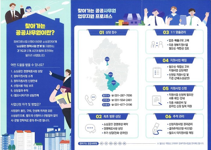 도움이 필요한 소상공인들 용인시 찾아가는 공공사무원 사무소와 경기도 일자리재단 잡아봐 홈페이지로 신청하면 된다.