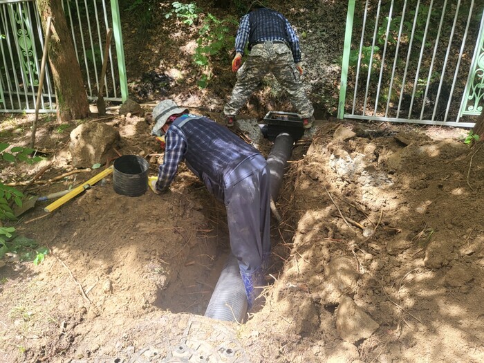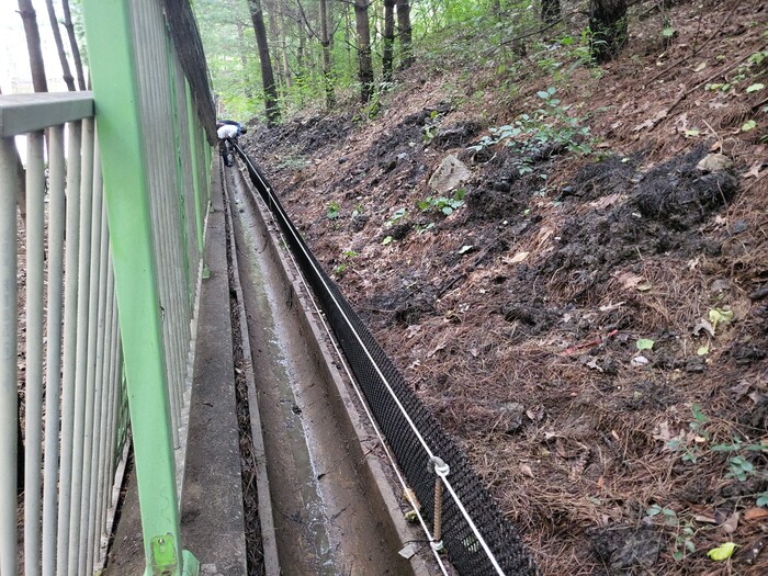 | ▲ 동백고등학교 담장 경계면 우수시설 개선 공사를 완료한 모습. 용인시 제공 |