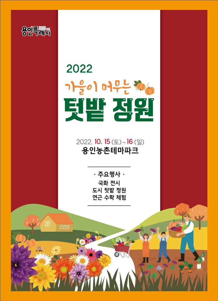 오는 15~16일 용인농촌테마파크에서는 ‘가을이 머무는 텃밭정원’을 주제로 ‘2022 사계절 테마축제’와 ‘2022 도시농업 체험행사’가 동시에 열린다.
