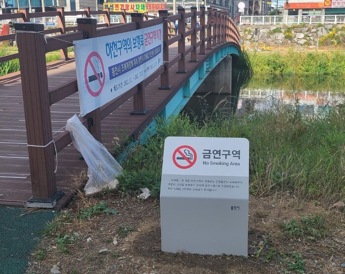 ▲ 경안천(처인구)에 설치된 금연 안내 표지판. 용인시 제공 |