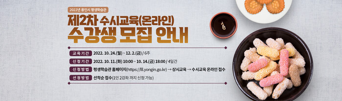 신청은 용인시평생학습관 홈페이지에서 하면 된다.