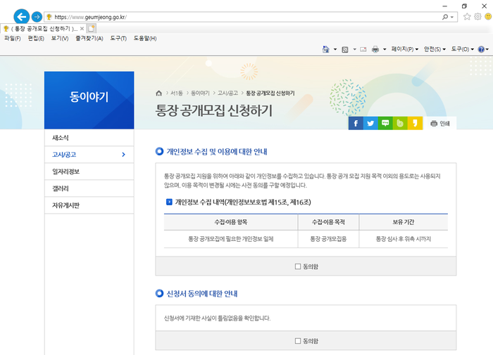 통장 공개모집 신청은 기존 동 행정복지센터 방문 신청과 온라인 신청 모두 가능하며, 온라인 신청 시 해당 동 ‘동 홈페이지 - 동 이야기 - 고시/공고’ 게시판에서 △통장 공개모집 신청서, △자기소개서 파일을 작성 후 온라인으로 제출하면 된다. 확인서는 온라인 신청 시 동의할 수 있어 별도로 제출하지 않아도 된다.