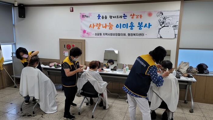 ▲ (상갈동) 지역사회보장협의체 홀로어르신 20명에 이미용 봉사. |
